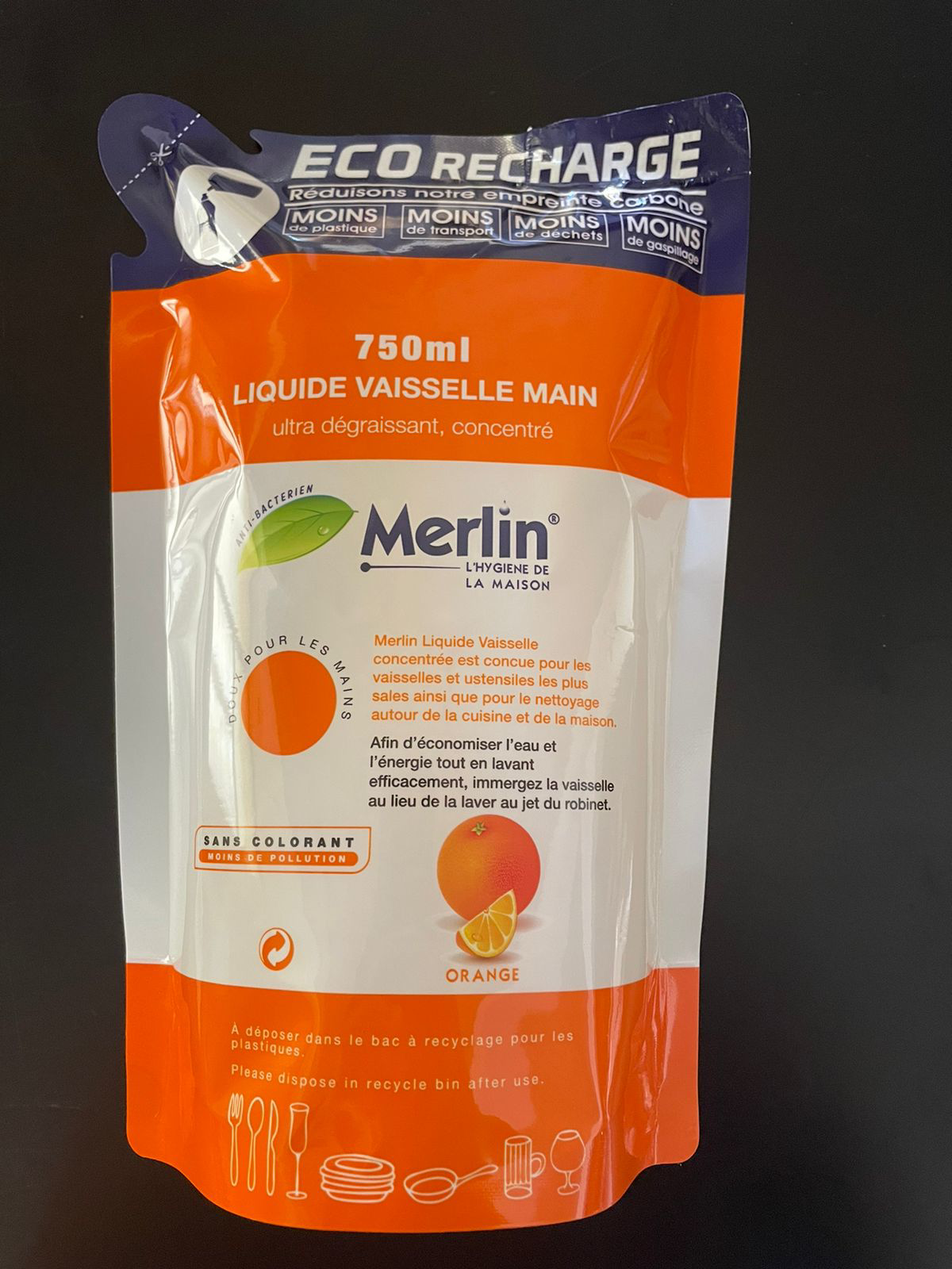 MERLIN LIQUIDE VAISSELLE POUCH ORANGE 750ML