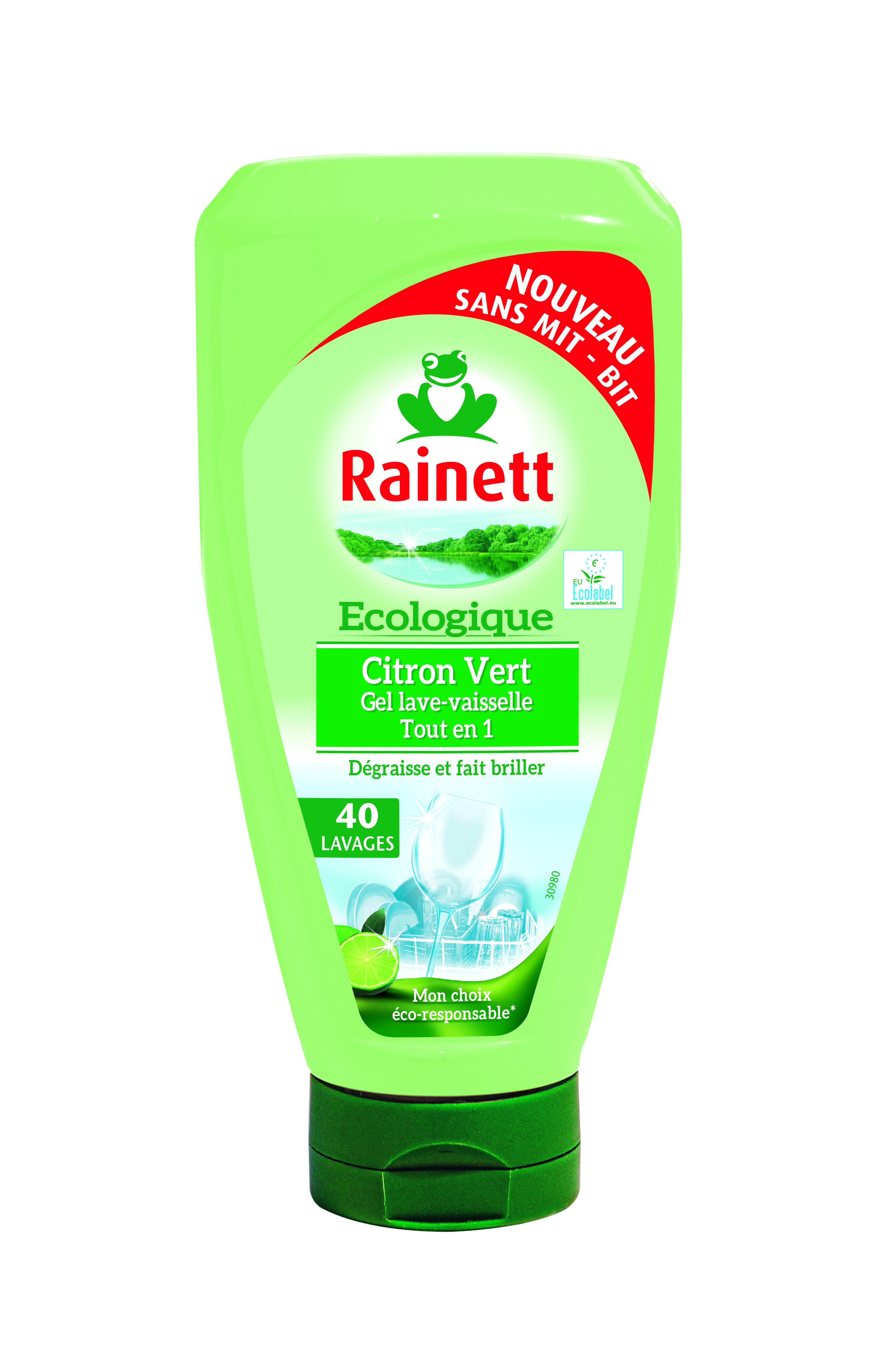 RAINETT GEL LAVE VAISSELLE TOUT EN1 ECOLABEL CITRON VERT 40 LAVAGES 650ML